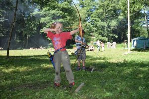 Díky podpoře města Kladna a možnostem našichvedoucí jsme rozšířili naše střelecké vybavení a počet lukostřeleckých disciplín. I letos mohl mít každý táborník vlastní luk, toulec a šípy. Celkem se střílelo 15 disciplín statických, pohyblivých i akčních. Nechyběla hromadná oblouková střelba ani noční střelby, kde jsme svítící tyčinky pro letošek vyměnili za hořící louče.